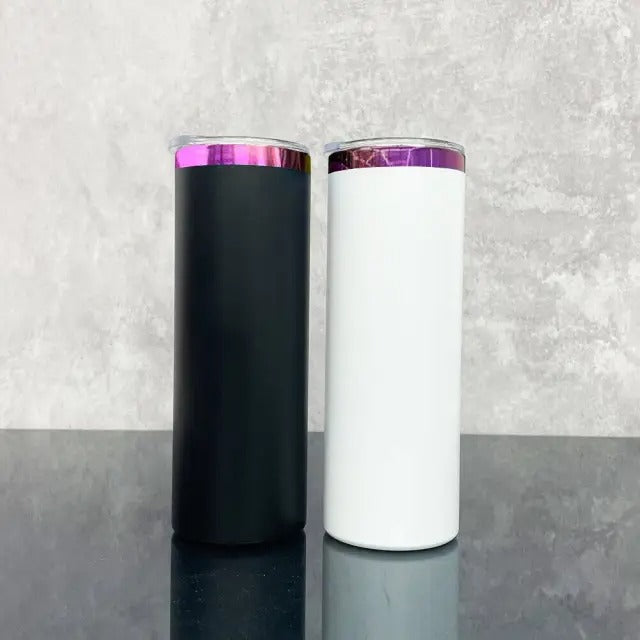 25 Pack USA Warehouse 20oz Mirror Purple Plate Powder Coat Straight Skinny Tumblers for Laser