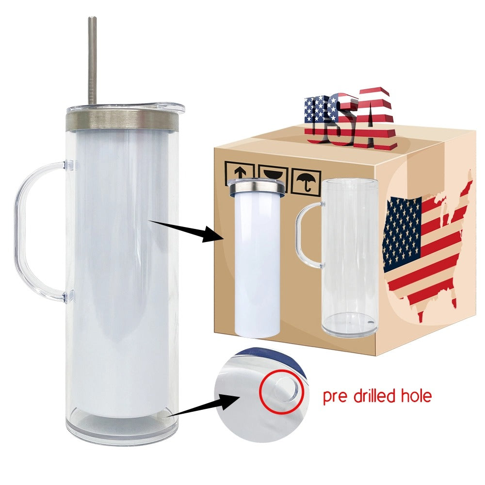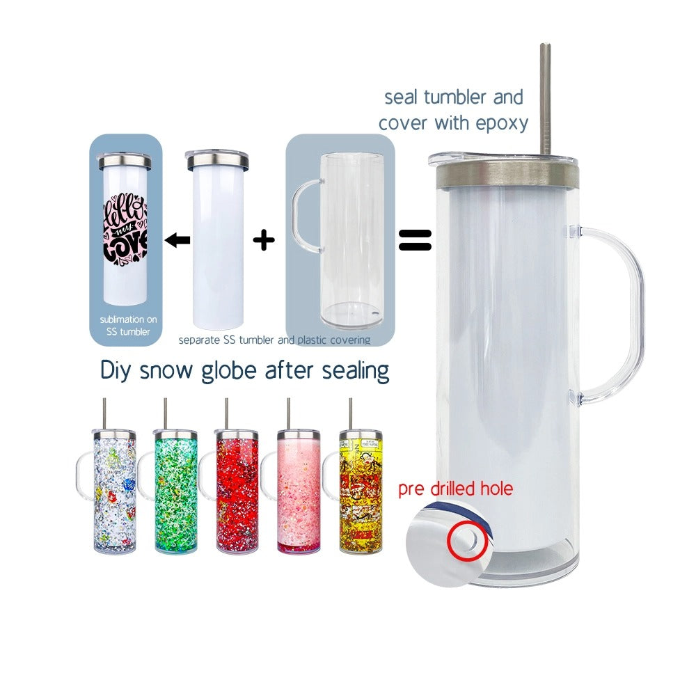 25 Pack USA Warehouse Customized Stainless Steel Pre Drilled Hole 20oz Snow Globe Storyboard Sublimation Tumblers with Handle